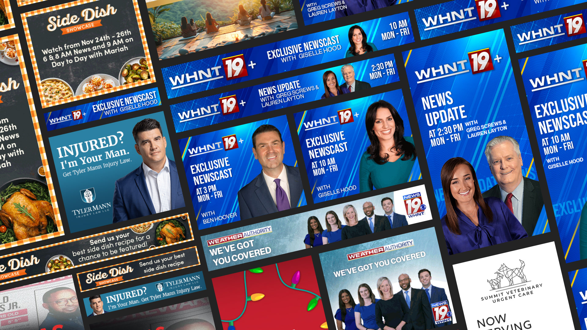 WHNT News 19 is the CBS affiliate for the Huntsville–Decatur–Florence area, delivering local news across broadcast and digital platforms. The projects below highlight the broadcast graphics, digital campaigns, logos, and app visuals I've worked on during my time at the station.
