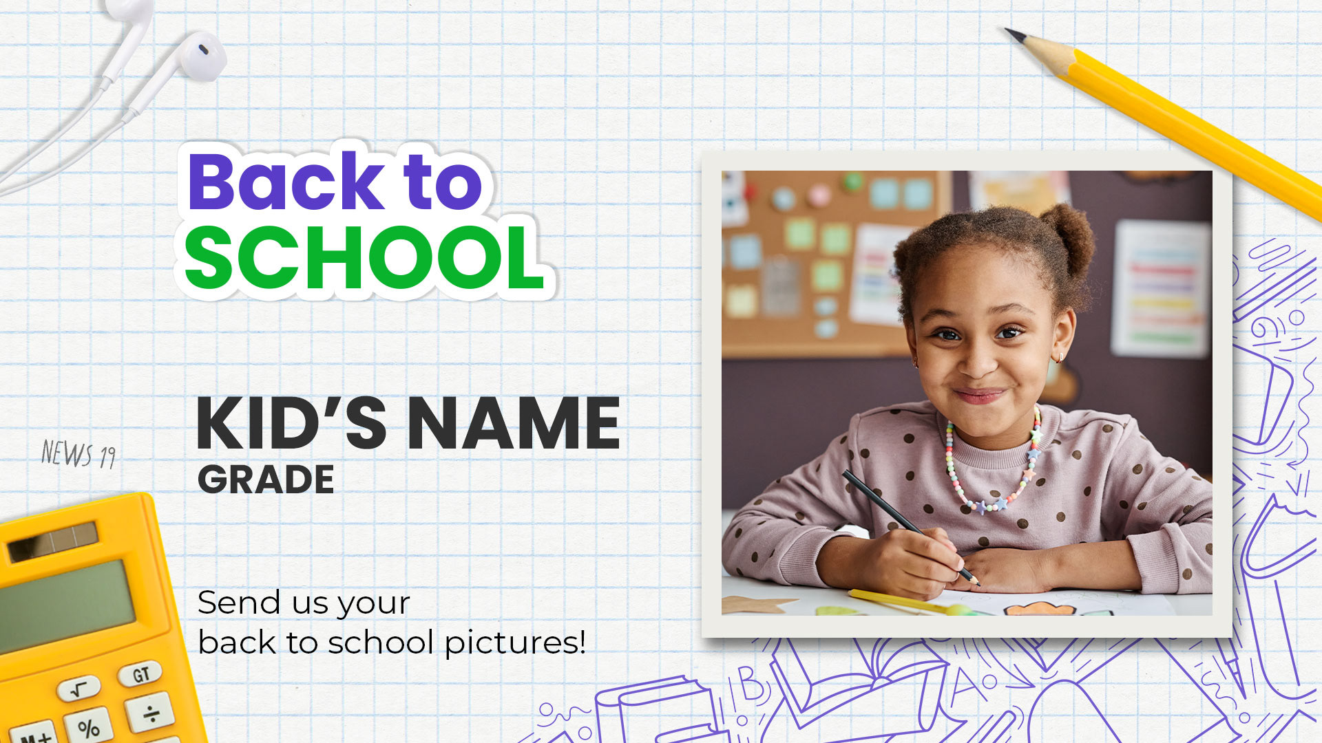 I designed a visual package for a back-to-school news segment. Deliverables included the show opener, in-studio monitor graphics, flashers, and full-screen graphics.